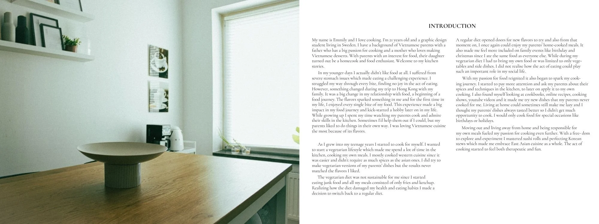Cooking has become my love language, a joyful way to express care and creativity. Whether I’m preparing breakfast, lunch, or dinner, it always feels meaningful to share homemade meals with the people I love. My dad’s honest feedback inspires me to keep improving, while my mom is my biggest supporter (even if she thinks I’m a bit messy). Recently, I turned this passion into a project by creating a photobook capturing my favorite dishes and memories from cooking three meals a day. I hope my food brings others the same warmth and happiness it brings me.